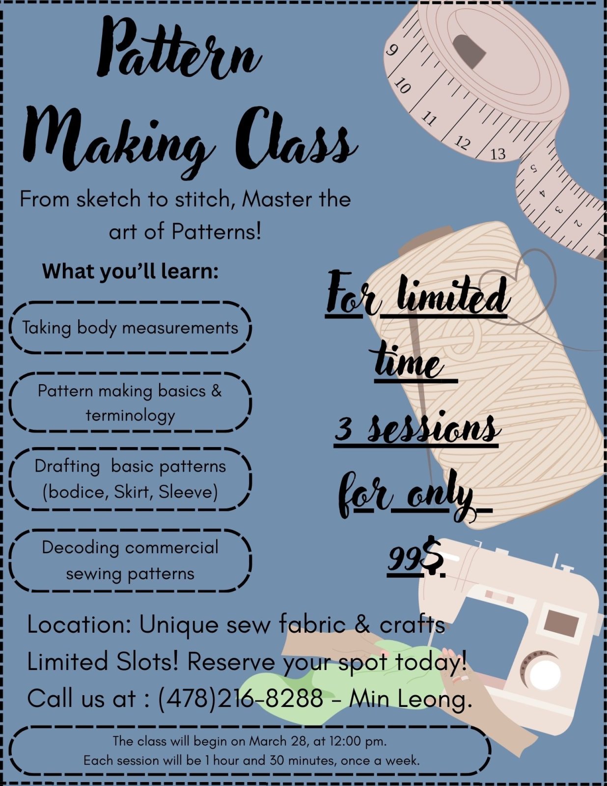 - Drafting basic patterns (bodice, skirt, sleeve)